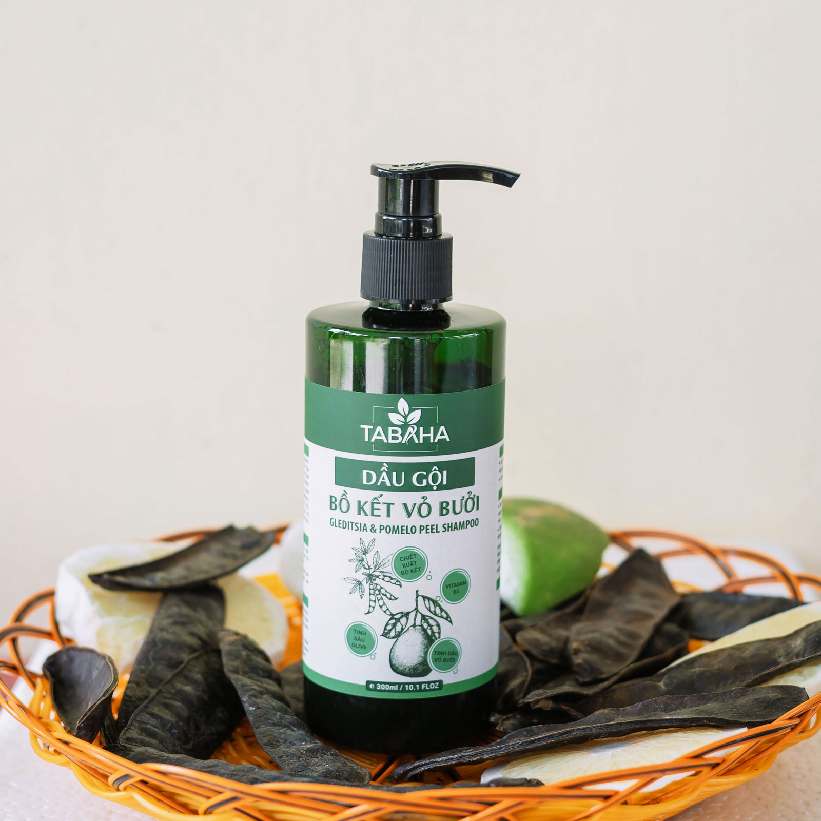 Dầu gội Bồ kết Và Vỏ bưởi TABAHA 300ml giúp giảm rụng tóc, nuôi dưỡng tóc từ sâu bên trong, cung cấp dưỡng chất giúp tóc chắc khỏe, phục hồi tóc hư tổn do tác