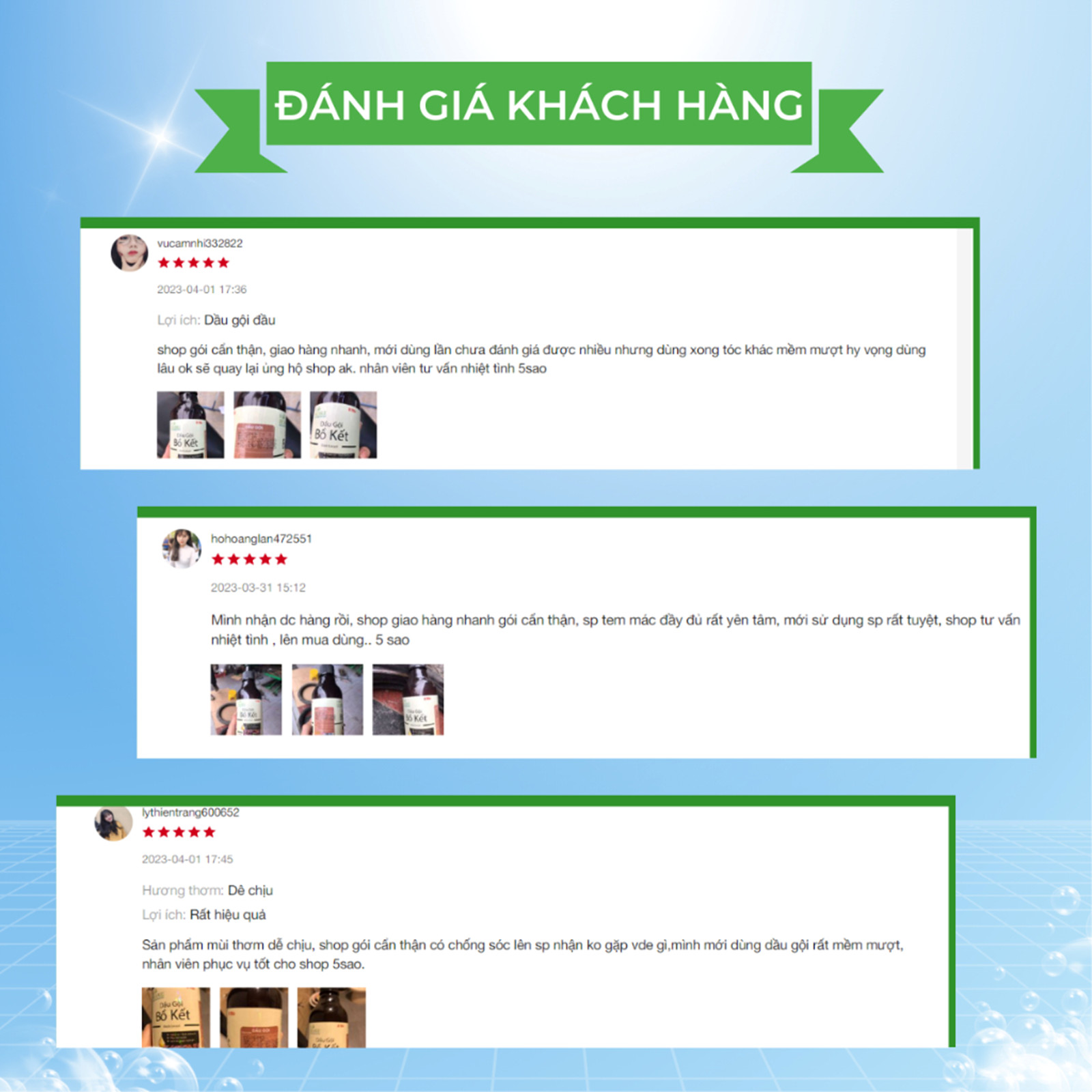 Dầu gội Bồ Kết với các thành phần thiên nhiên giúp tóc đen bóng, chắc khỏe, suôn mượt và phục hồi tóc hư tổn, lấy đi bụi bẩn một cách tự nhiên, cải thiện tình trạng nấm da đầu, gây ngứa khó chịu, ngăn ngừa tình trạng rụng tóc và giúp kích thích mọc tóc.