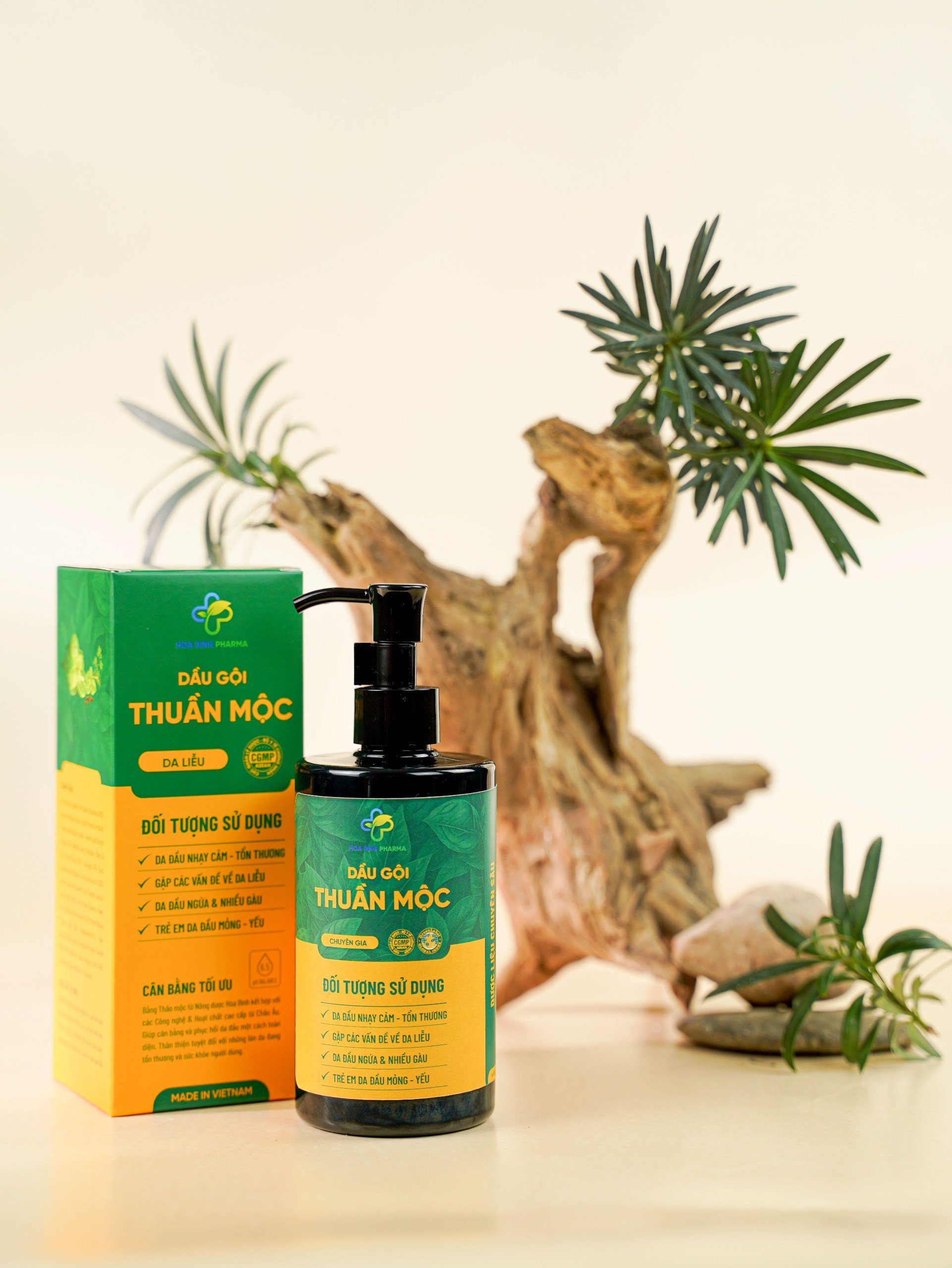 Dầu gội Thuần Mộc là sự kết hợp giữa các thành phần thảo dược thiên nhiên, được nghiên cứu và sản xuất theo dây chuyền đạt chuẩn CGMP.