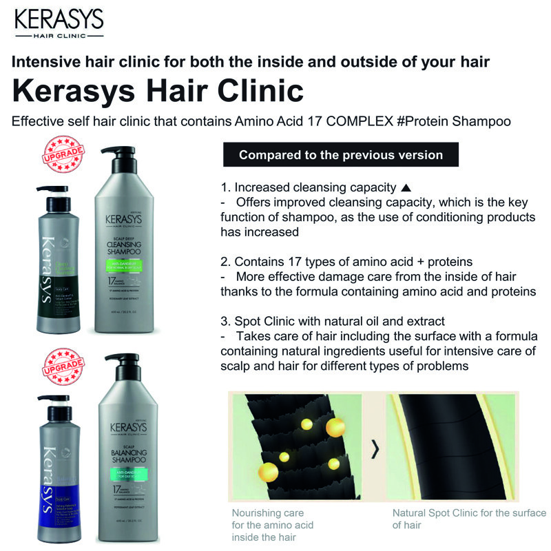 - Giữ cho da đầu nhờn luôn mát mẻ và tươi mát Kerasys chuyên sâu cho cả bên trong và bề mặt của tóc