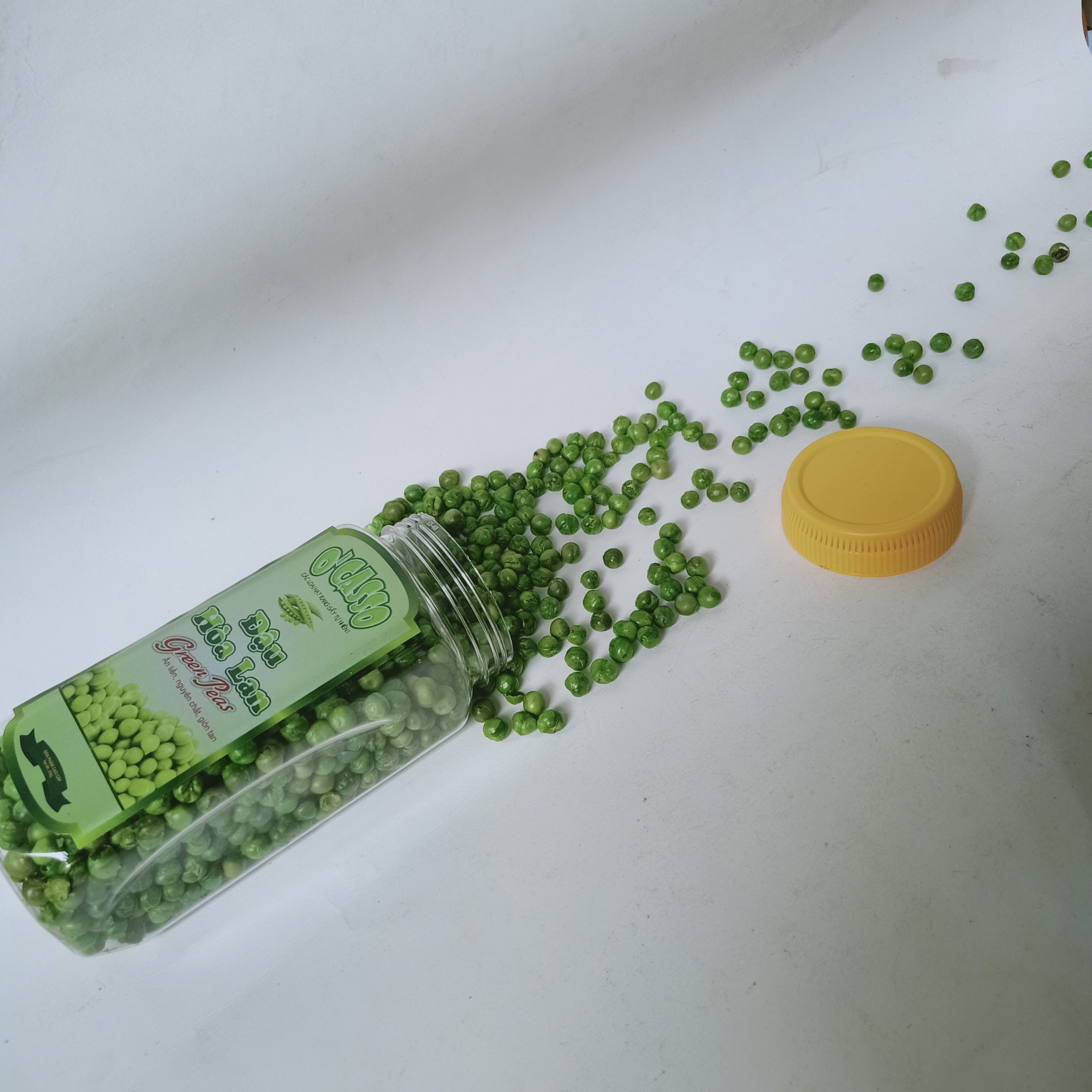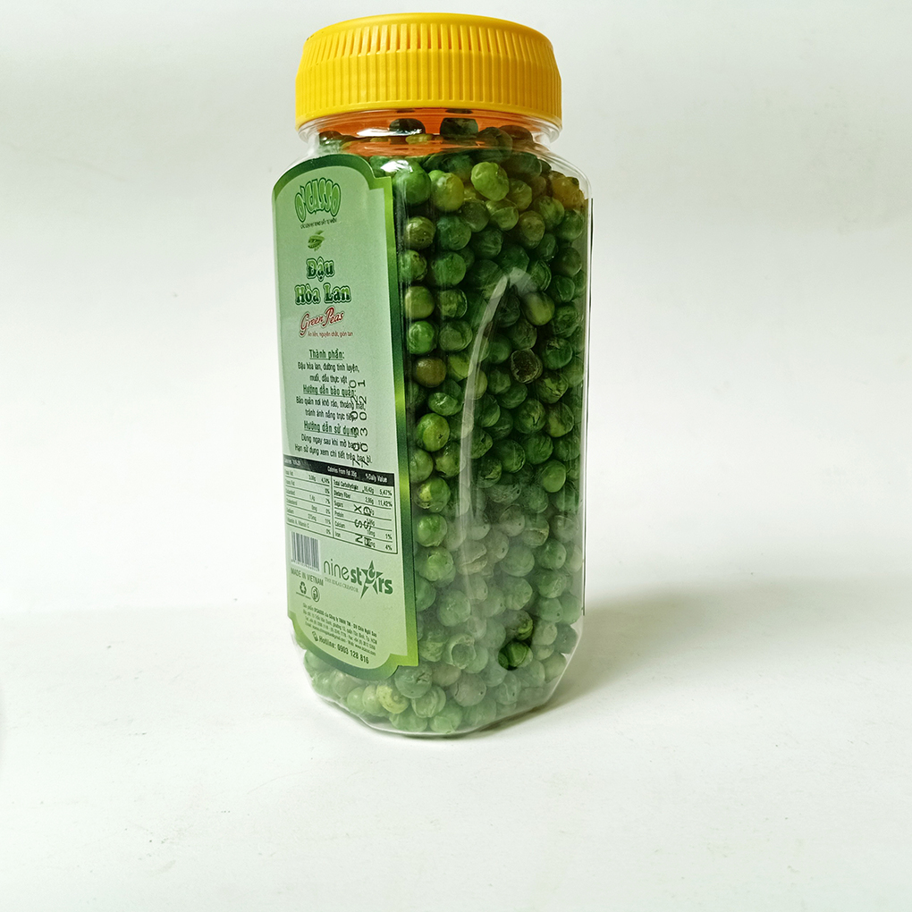 - Đậu hòa lan sấy giòn vị muối O’Casso. Sản Phẩm chính hiệu của Nine Stars đảm bảo chất lượng, thơm ngon, giòn tan từng hạt. Mùi thơm của hạt đậu Hòa Lan, độ béo