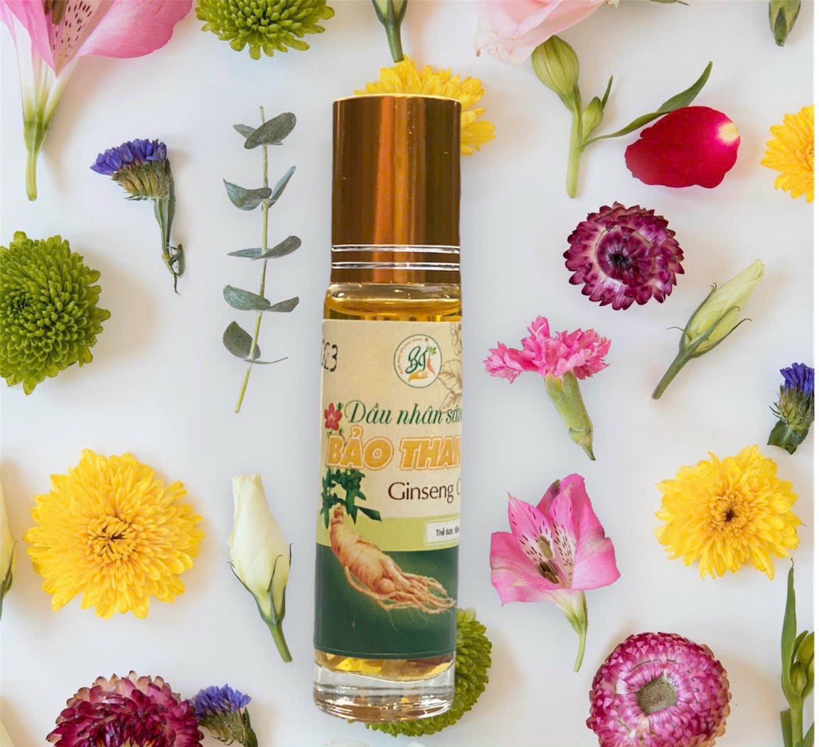 Mua tại TiktokThành phần : Bạc hà 13% , Nhân sâm 35% và các thành phần khác Hướng dẫn sử dụng : Thoa tinh dầu vào vùng đau nhức, ngứa ,khó chịu Thoa trực tiếp lên 2 bên thái dương Dùng để xông,hít, ngửi Cách bảo quản : để nơi khô ráo thoáng mát, tránh xa tầm tay trẻ em *Lưu ý : không thoa trực tiếp lên chỗ bị viêm ,loét