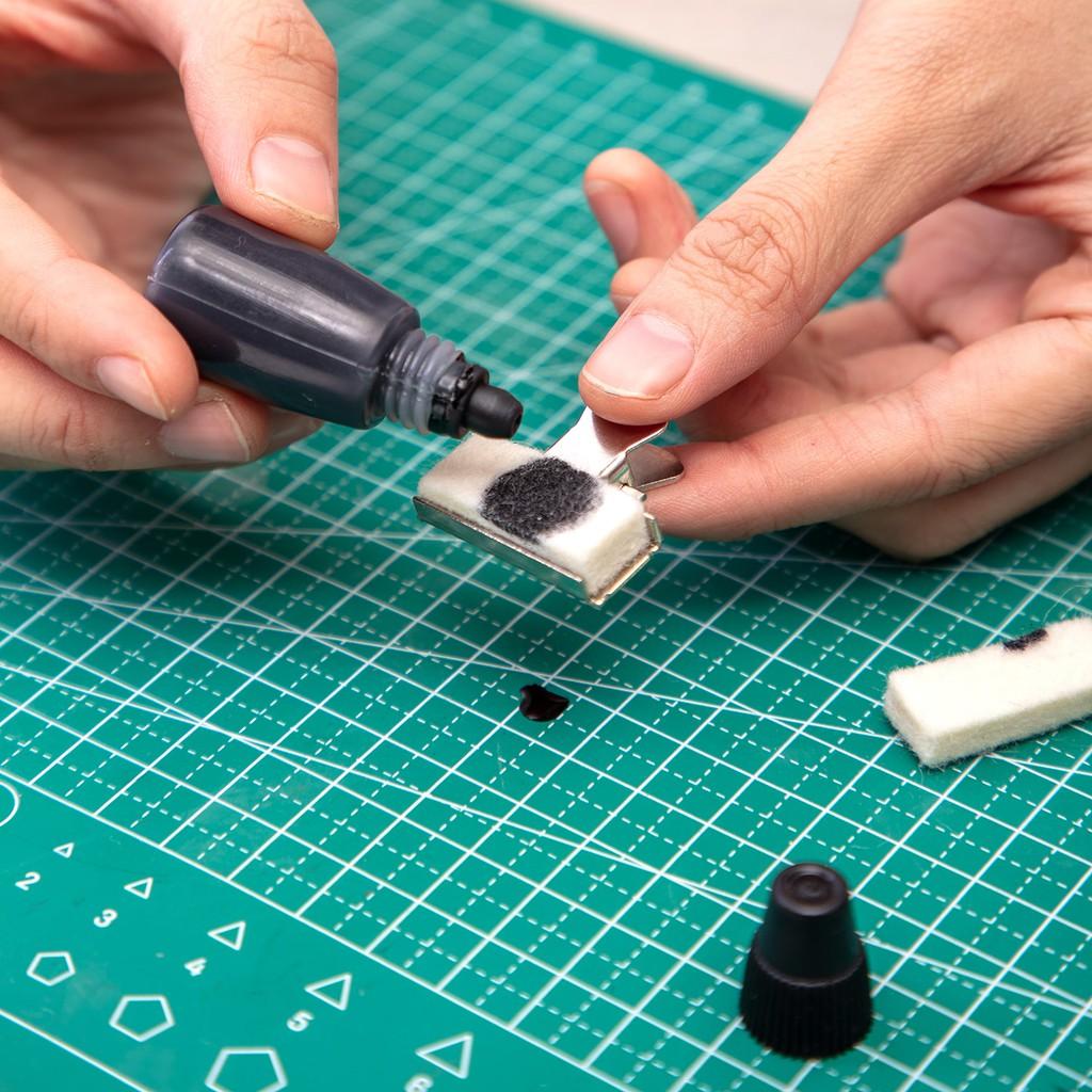 Mực Dấu Shiny đóng lên giấy Có 3 màu xanh đỏ đen tùy chọn. Khi bơm vào nếu thấy mực rút nhanh, thì bạn nhỏ thêm vài giọt vào. Khi nào thấy mực rút chậm