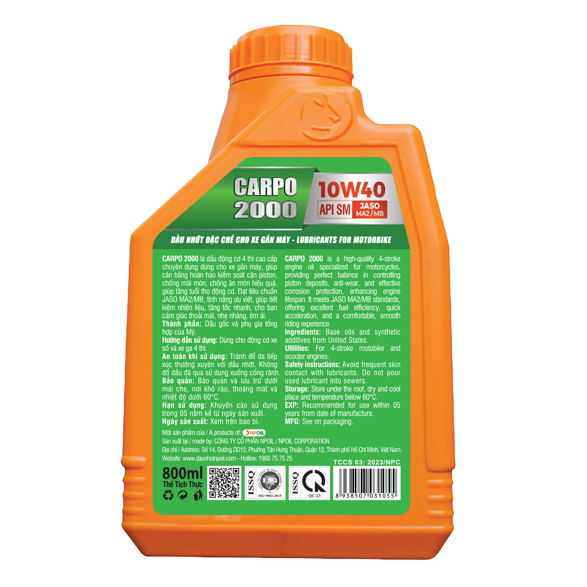 ✨Dầu nhớt xe máy CARPO 2000 (Synthetic Oil) - API SM - JASO MA2/MB - 10W40 - 0.8L/1L (Xe số và Xe tay ga)