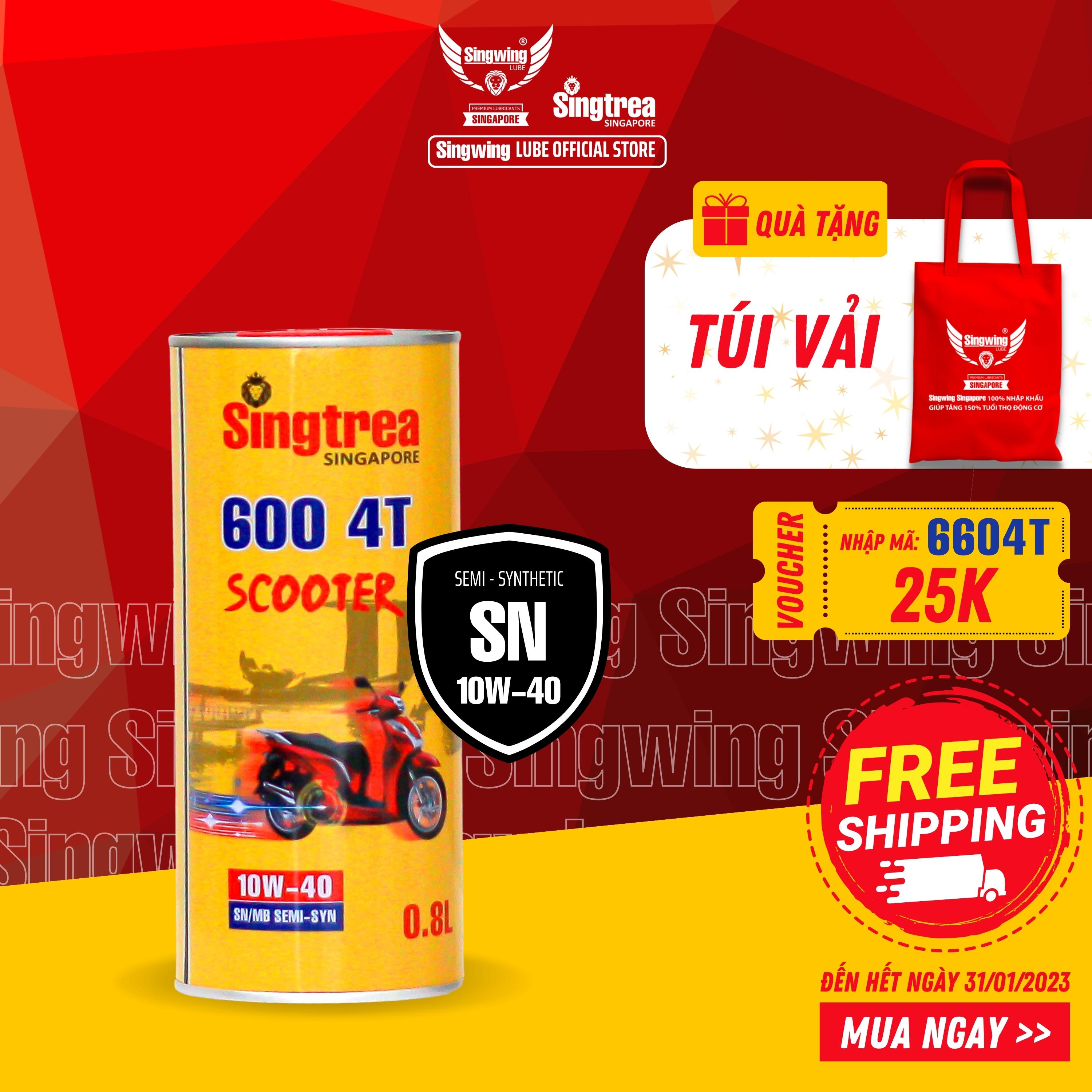 ✨Dầu nhớt xe máy Singtrea 600 SCOOTER 4T 10W-40 SN/MB 0.8L dành cho xe tay ga