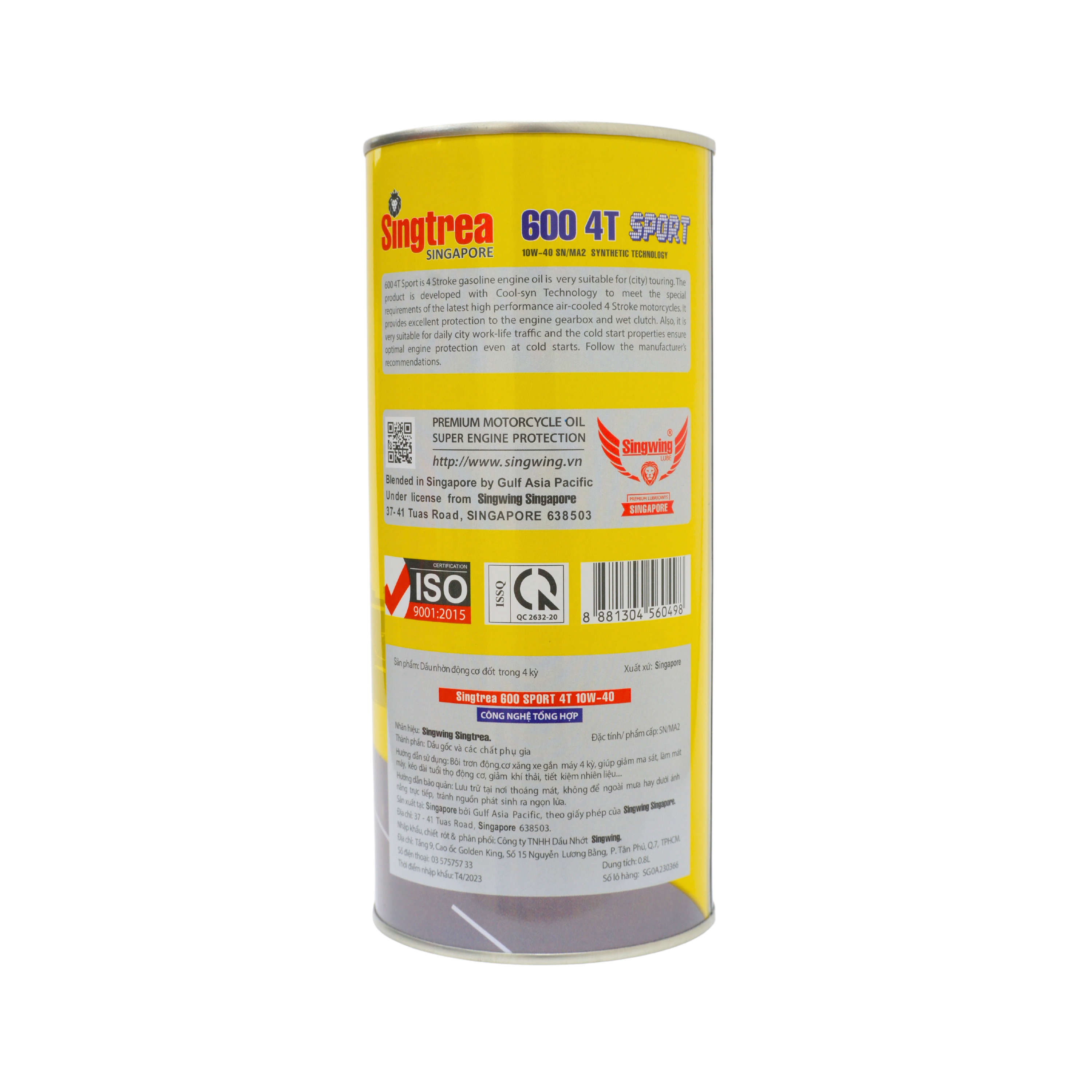 ✨Dầu nhớt xe máy Singtrea 600 SPORT 4T 10W-40 SN/MA2 0.8L dành cho xe số