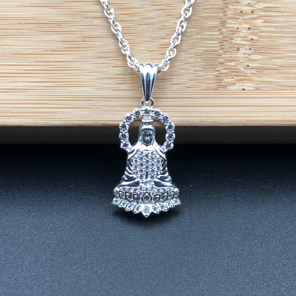 ️ Chất liệu: Dây xoắn kép bạc ta nguyên chất S99 không xi mạ cực bền chắc, chiều dài dây 50cm móc khóa tròn.( có dây 55cm khách chat với shop để đặt riêng nhé ). Mặt Quan Thế Âm Bồ Tát bạc 925 đính đá nhân tạo cao cấp sáng bền đẹp. Chiều dài dây 50 cm,chiều dài cả móc 4,5cm. Được thiết kế vô cùng tinh tế, mặt đá CZ cao cấp chống xước sáng lung linh như kim cương nhân tạo.