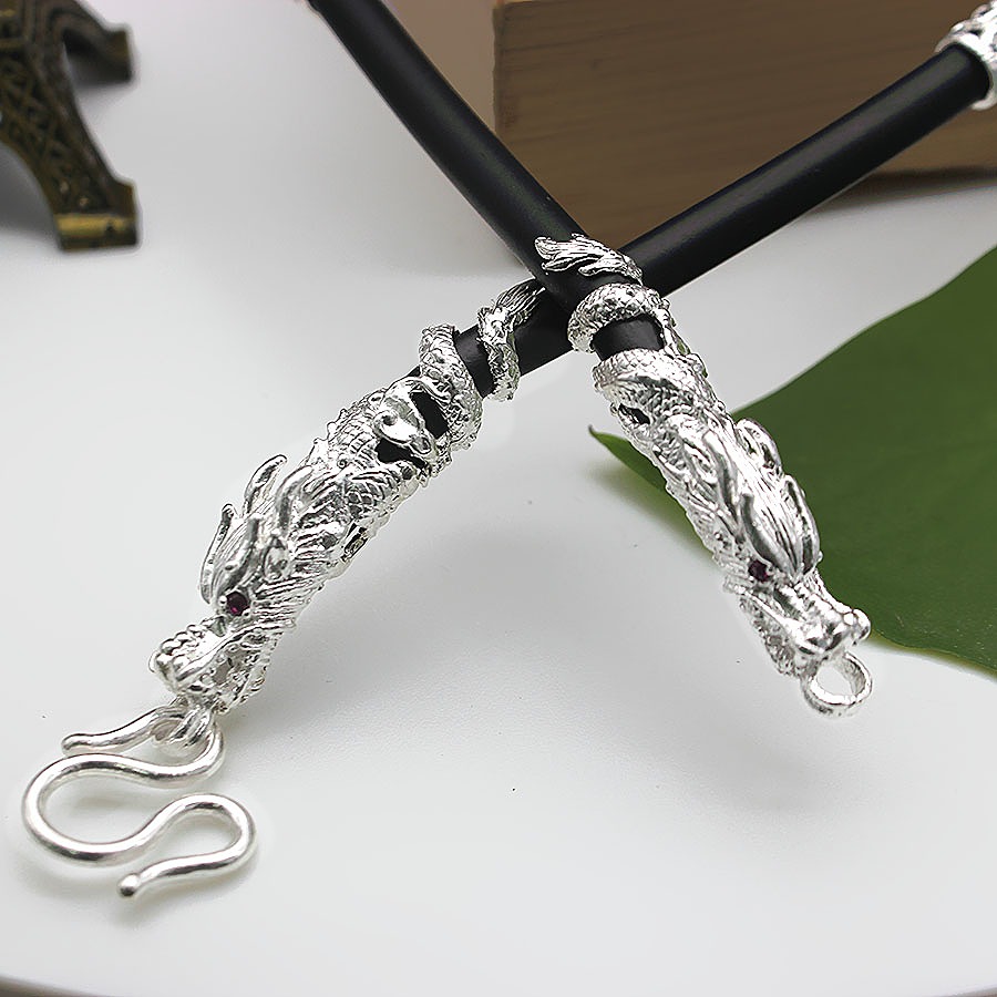 * Thương hiệu: Bạc Hiểu Minh. * Xuất xứ: Việt Nam. * Chất liệu: - Dây được làm từ loại cao su có độ bền cao, đầu rồng được làm từ loại bạc ta 929
