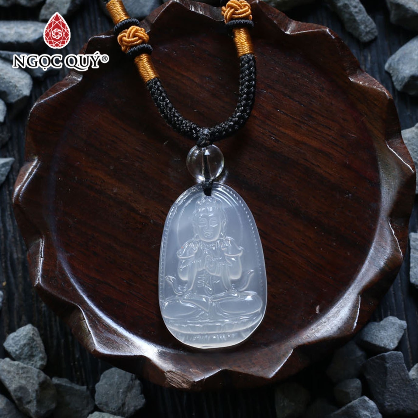 Mặt dây chuyền phật bà đá mã não trắng - Hợp mệnh kim, mệnh thủy | Ngọc Quý Gemstones |