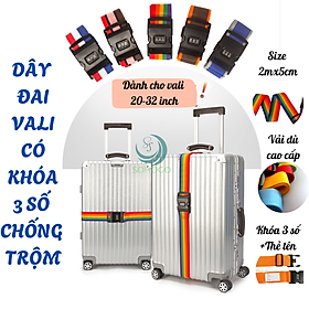 ✨Dây đai vali hành lý chống bung 2m có khóa 3 số- Dây buộc vali du lịch co giãn, có khóa- Dây đai cố định vali cao cấp- Dây đai vali mã số an toàn