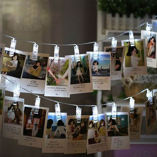- Còn gì lãng mạn hơn khi trang trí dây đèn led kẹp theo những bức ảnh hay bức tranh đầy kỷ niệm với dây đèn treo ảnh V.2.