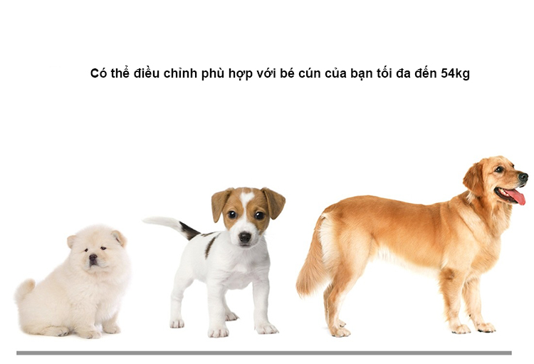- Có thể điều chỉnh hoàn toàn, phù hợp với những chú chó lớn, vừa và nhỏ từ 15 pound đến 120 pound (7 kg đến 54 kg). Và đối với những chú chó nhỏ hơn, có thể tháo dây đeo ngực.