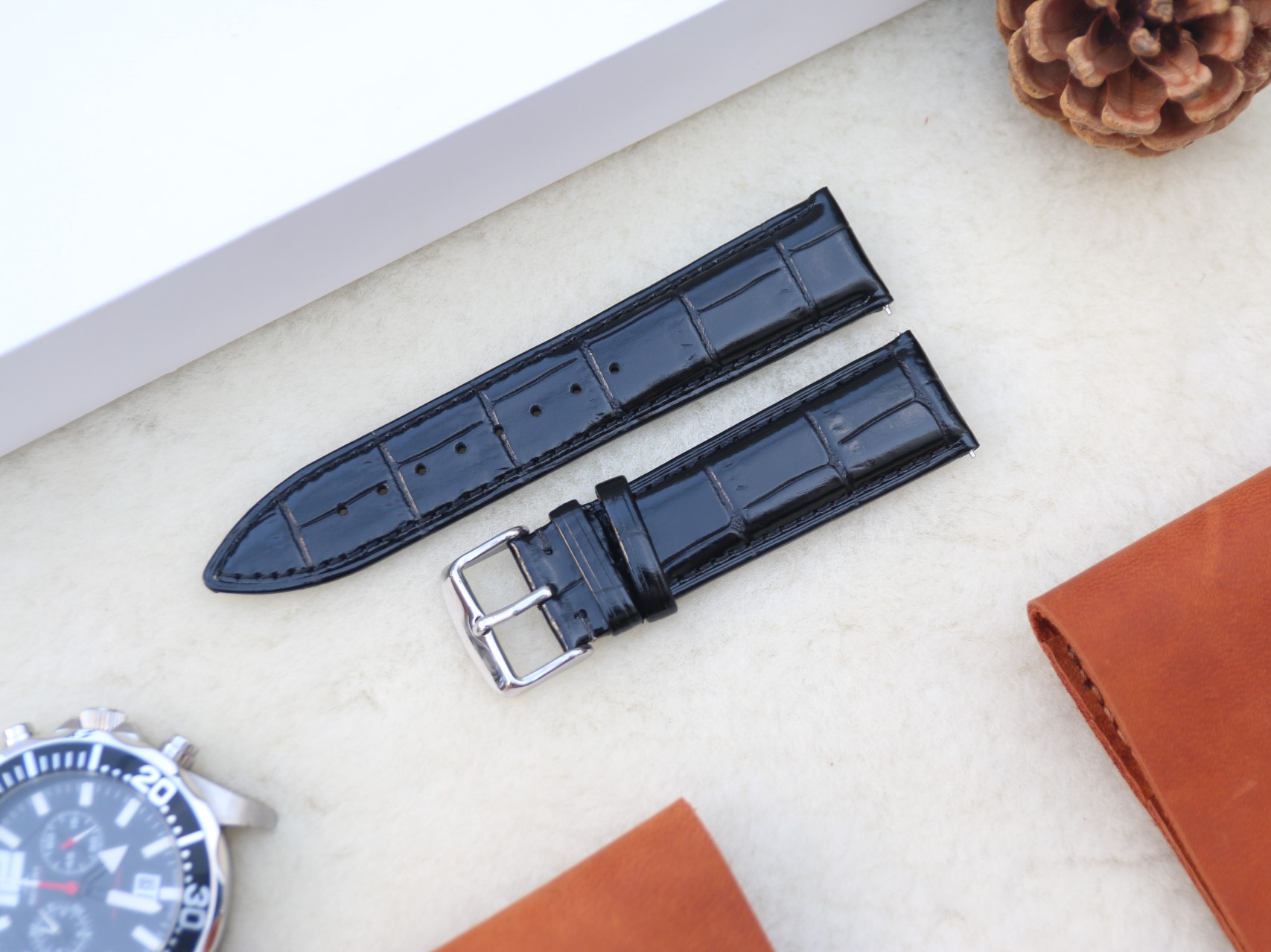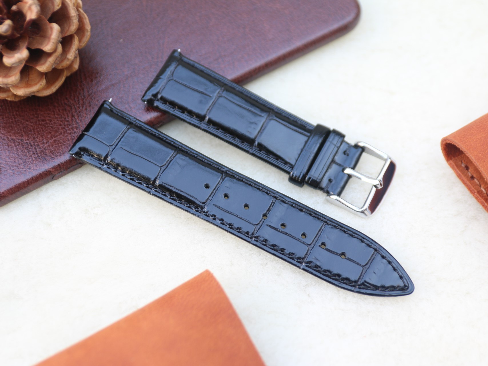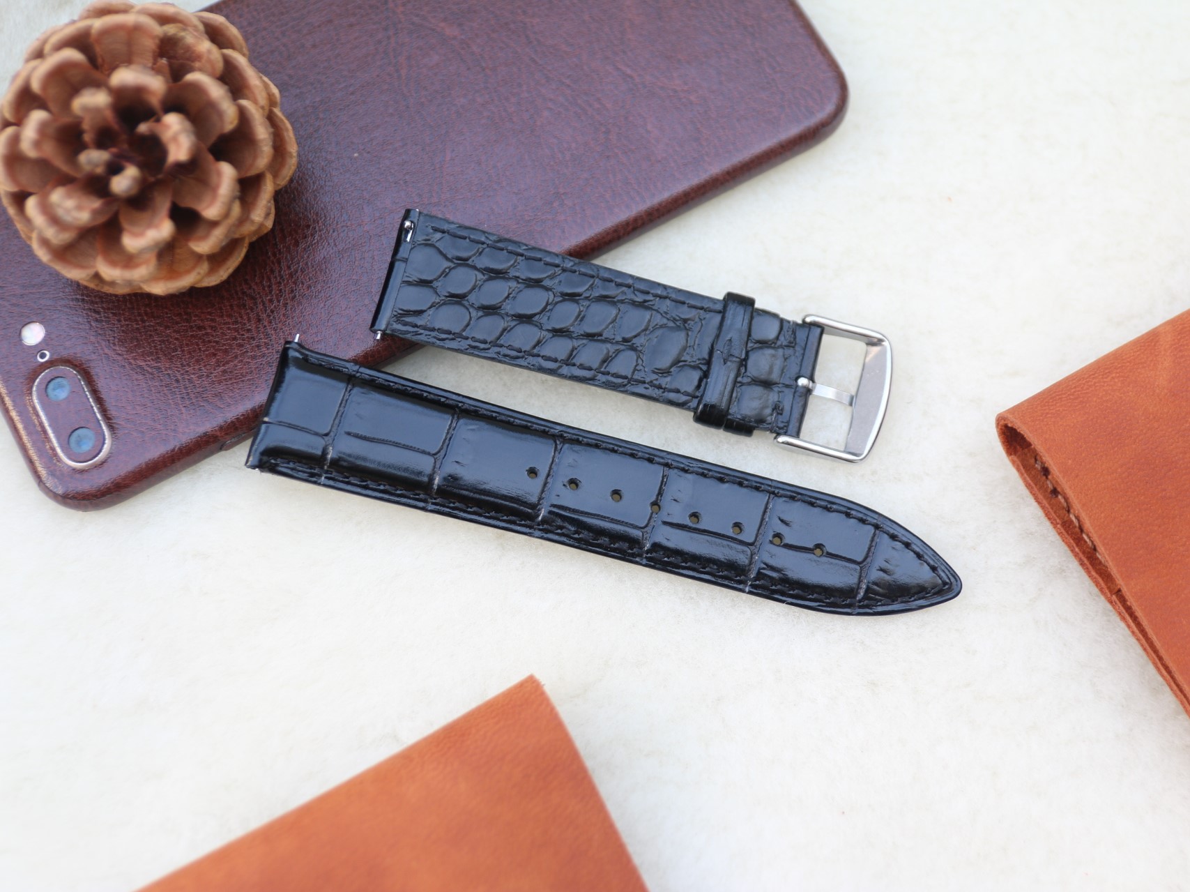 Dây đồng hồ da bò chốt thông minh size 20mm, 22mm, 24mm