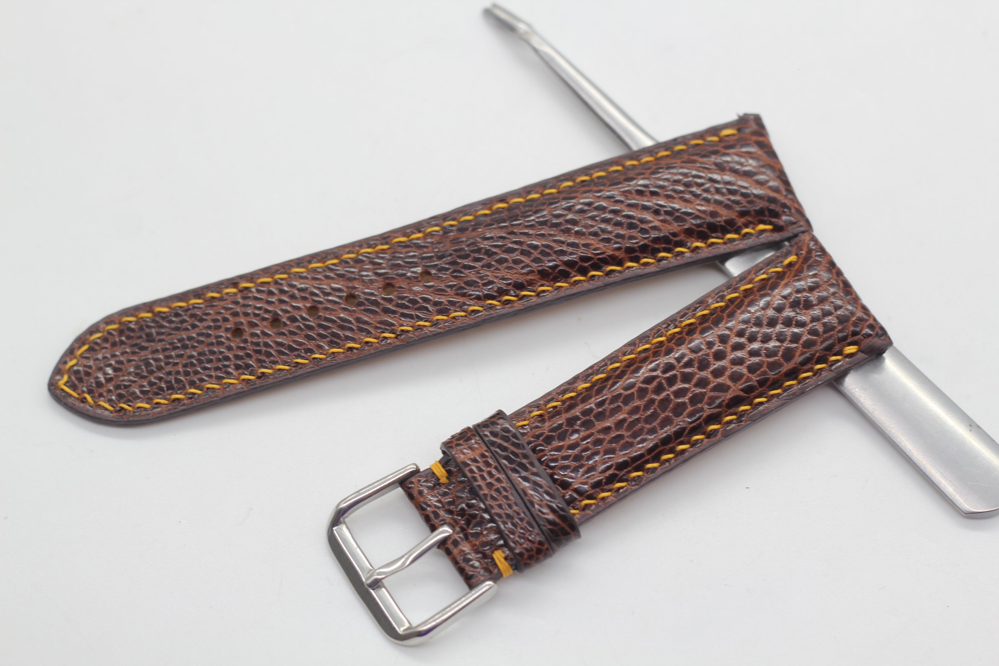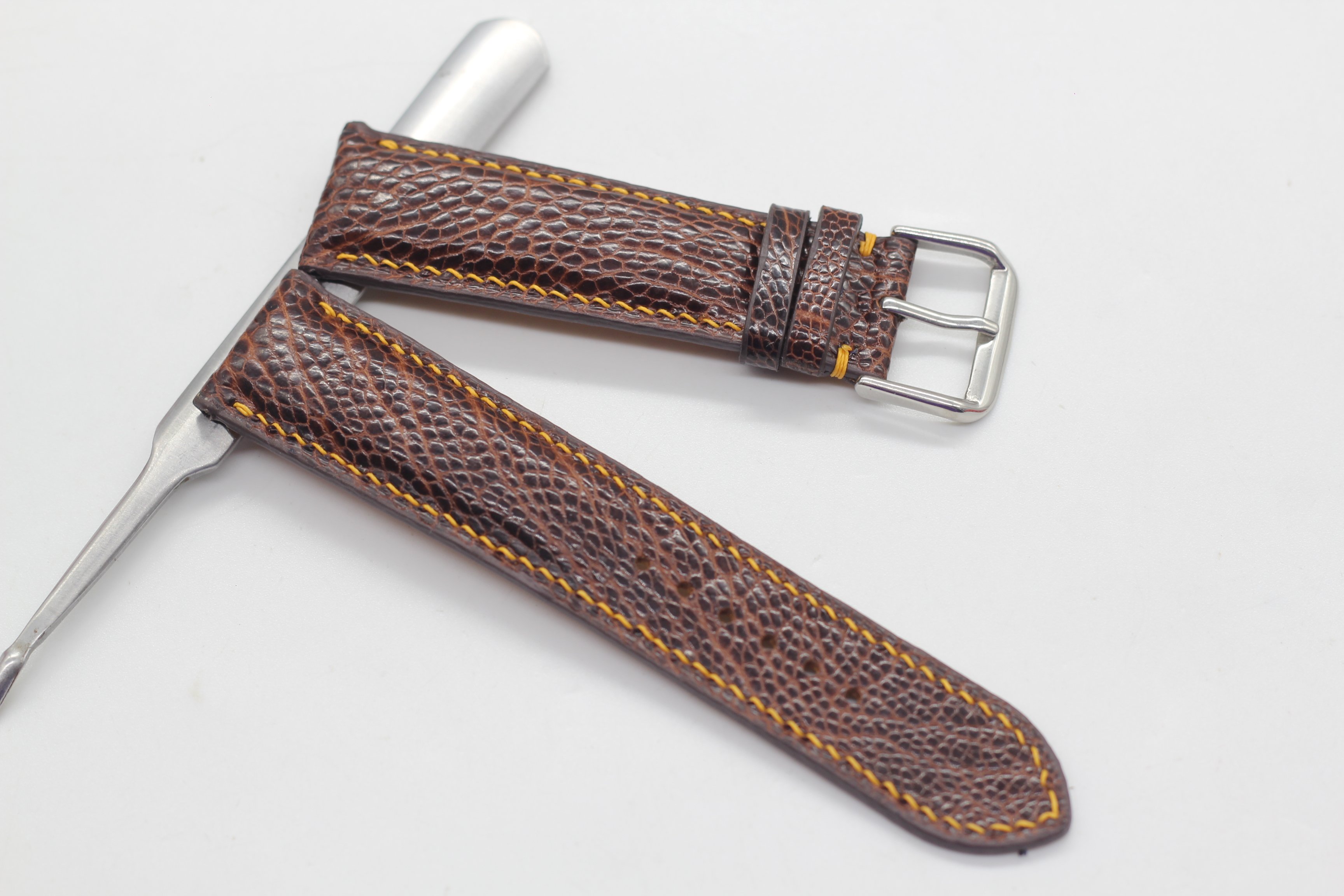 ✨Dây Đồng Hồ Da Đà Điểu Thật Cao Cấp Songhan Leather HANDMADE Màu Nâu Khóa Kim , Bảo Hành 6 Tháng WSOT-01