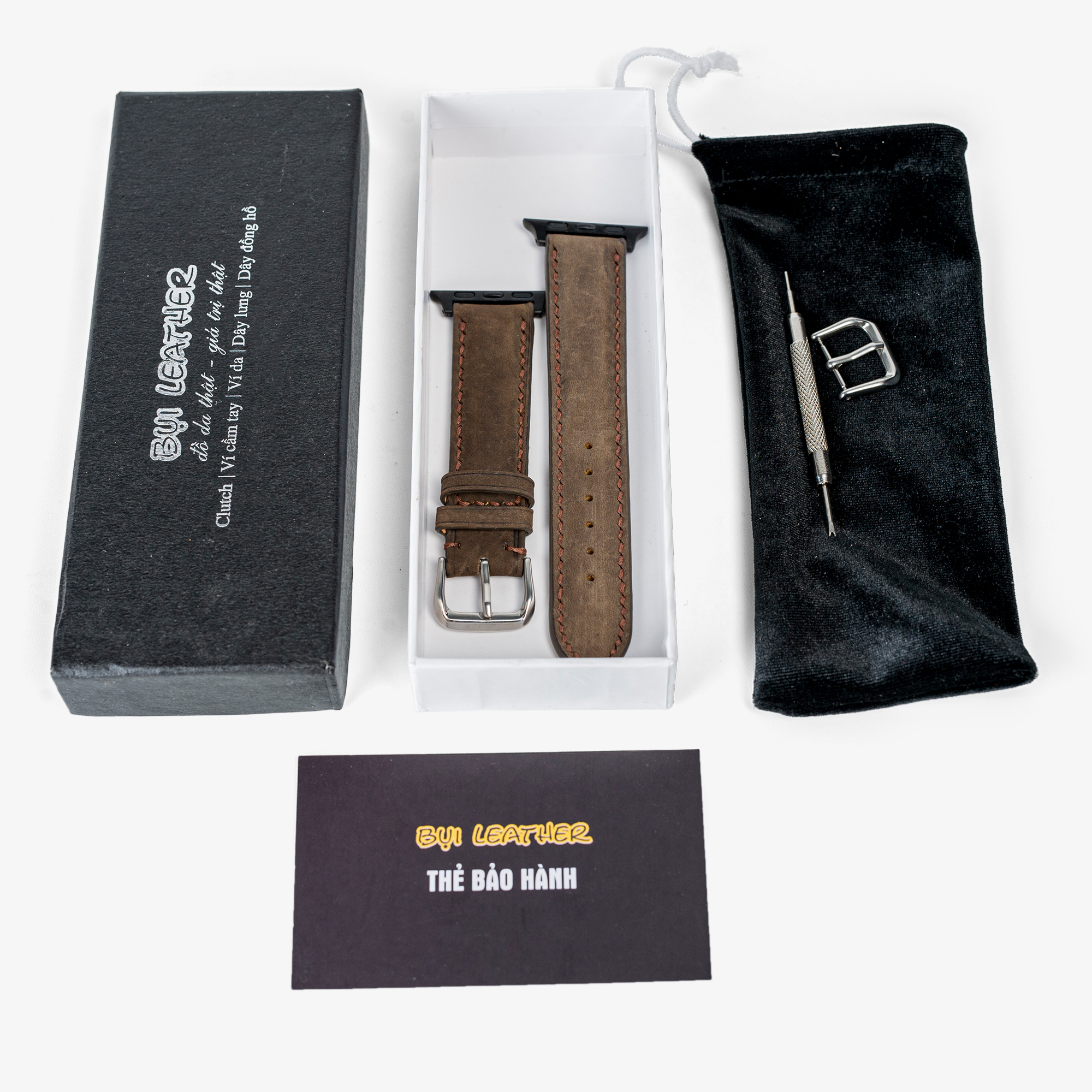 Mua tại TiktokDây apple watch da bò Vintage D116-da thật-khâu tay thủ công cao cấp, dây đeo apple watch series 3-series 4-series 5-series 6-se size 38mm-40mm-42mm-44mm, tặng tháo chốt, thương hiệu Bụi leather chuyên đồ da thật, bảo hành 12 tháng