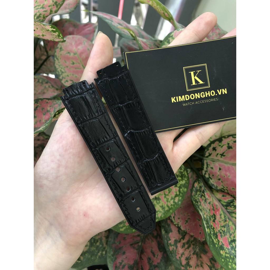 ✨Dây Đồng Hồ HUBLOT Lót Da Vân Đen Thơm Mùi Vani Case 38 Size Dây 15 - 21 - 18