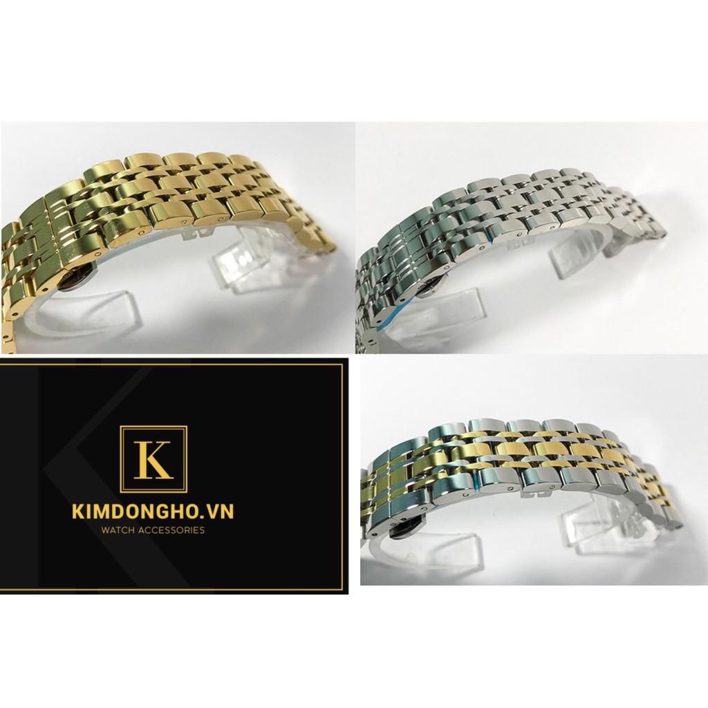 Dây đồng hồ 5 hạt inox đúc đặc, khóa 1 gập logo cao cấp, size 20mm, tặng kèm chốt - D2106