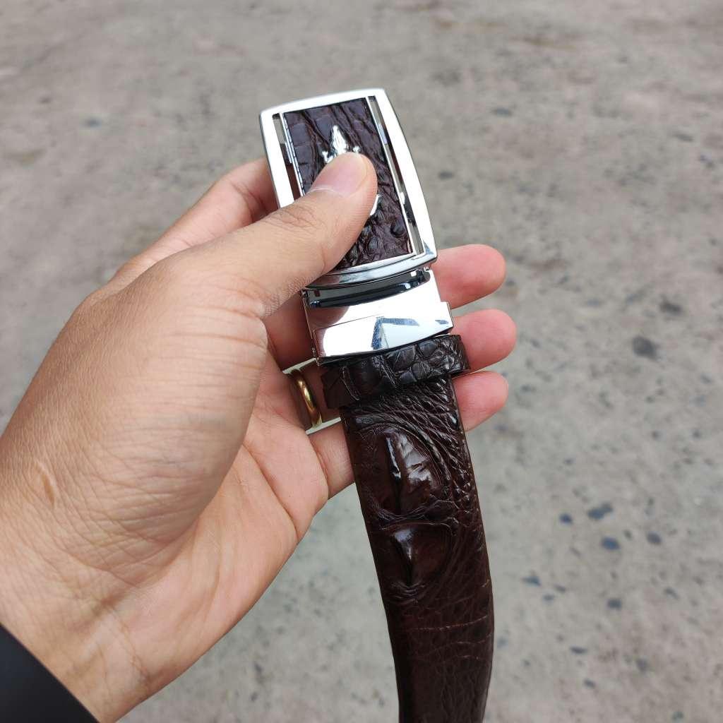 Mua tại TiktokThắt lưng da cá sấu nguyên con chạy từ gù cổ qua gai lưng đến vây đuôi của cá sấu. Mặt khóa tì tự động không rỉ sét.