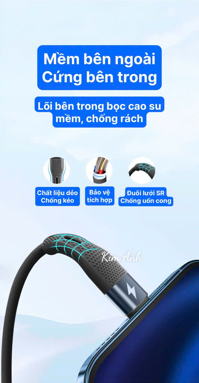 Cáp có khả năng kết nối từ tính giúp tự động cuộn lại một cách gọn gàng, chống rối và dễ dàng cất giữ, rất tiện lợi khi bạn mang theo Được chế tạo từ