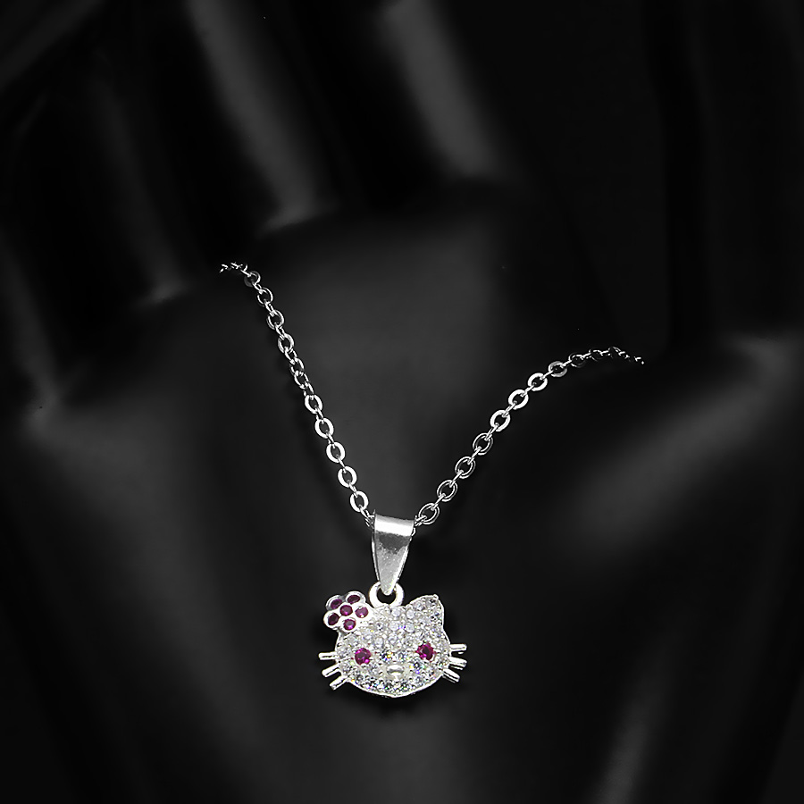 Dây Và Mặt Dây Chuyền Trẻ Em Bạc Hiểu Minh DTE053 Mèo Kitty Bảo Hành Vĩnh Viễn Hàng Chính Hãng