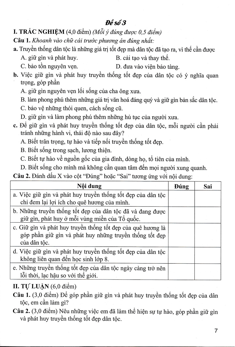 Chương trình môn Giáo dục công dân lớp 8 có nhiều nội dung, kiến thức mới, với mong muốn giúp các em có thêm tài liệu tham khảo, rèn luyện kĩ năng tự kiểm tra, đánh giá tốt, chúng tôi biên soạn cuốn Đề kiểm tra, đánh giá Giáo dục công dân 8.