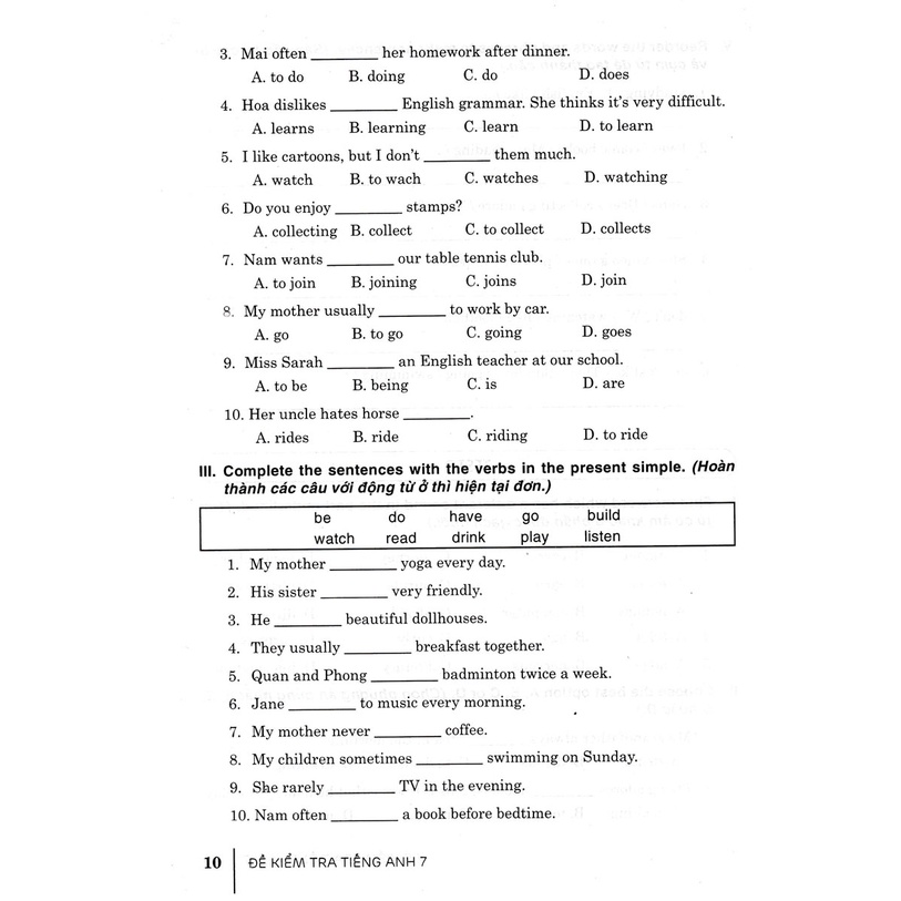 Sách bao gồm nhiều để kiểm tra với rất nhiều dạng khác nhau để các em luyện tập cách giải đề. Nội dung các đề kiểm tra bám sát các phần Ngữ âm, Từ vựng và Ngữ pháp, cũng như các chủ đề của mỗi bài học trong sách giáo khoa Tiếng Anh 7, hơn nữa còn được mở rộng thêm nên sẽ rất dễ dàng để các em vừa kiểm tra lại kiến thức đã học ở trường, vừa luyện tập và phát triển các kĩ năng phát âm, đọc, nói và viết.