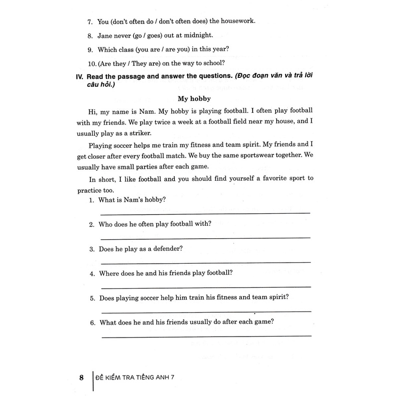 Với nội dung nêu trên cùng với bố cục rõ ràng và chặt chẽ, chúng tôi hi vọng cuốn sách này sẽ là một tài liệu hữu ích cho các em học sinh lớp 7 ôn tập và rèn luyện các kĩ năng tiếng Anh, qua đó nắm vững cách giải các đề để làm tốt tất cả các bài kiểm tra đánh giá giữa kì và cuối kì.