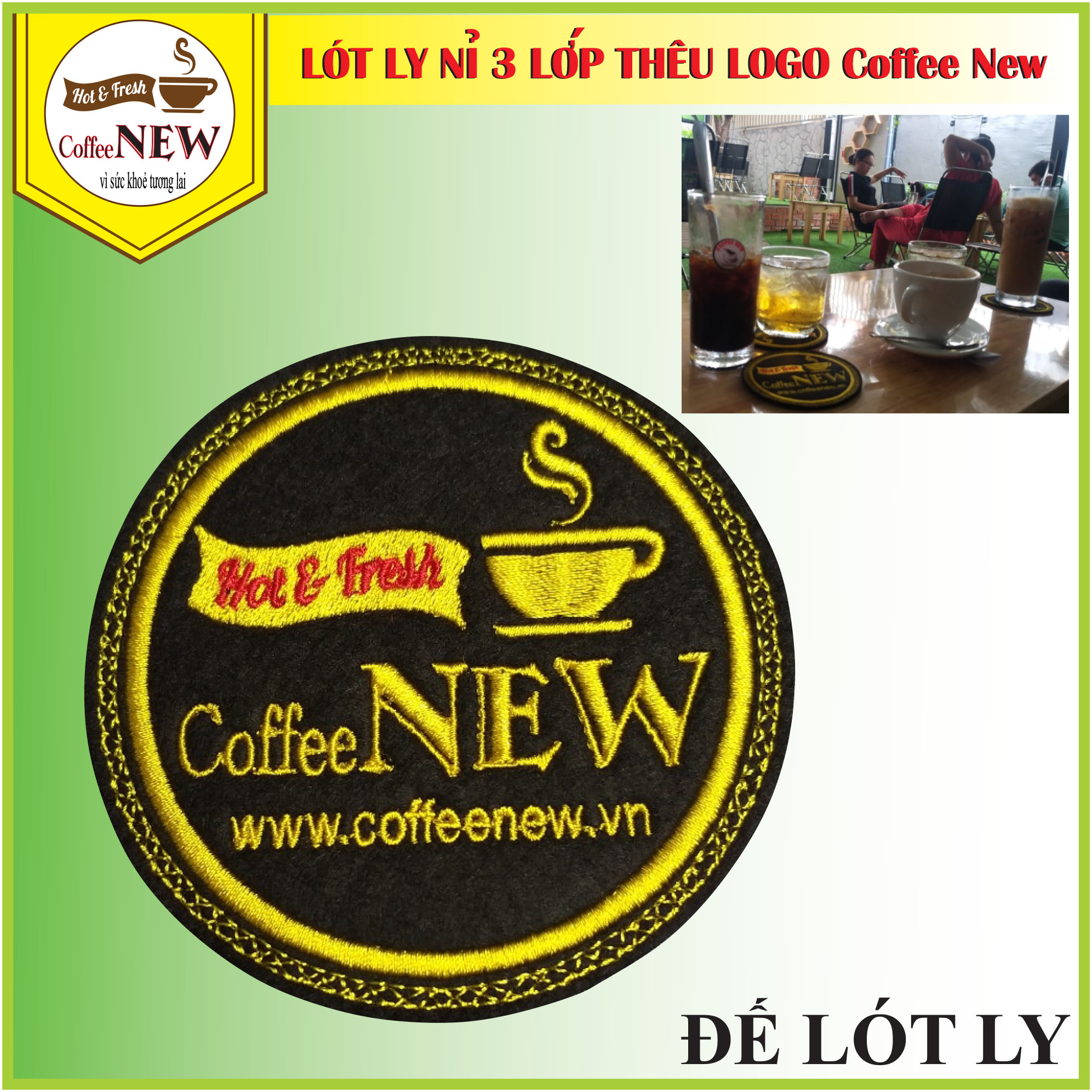 ĐẾ LÓT LY 3 LỚP THÊU LOGO_Coffee New