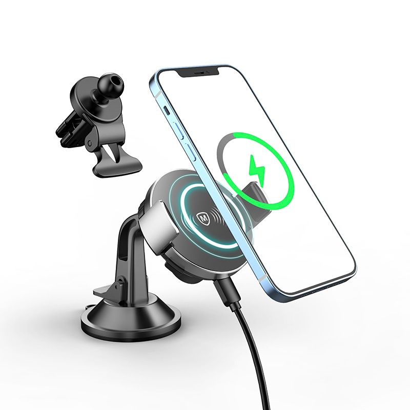10. Sản phẩm này không thể được sử dụng ở những nơi có điện từ, những nơi dễ cháy/nổ.   TÍNH NĂNG • Hỗ trợ sạc không dây 15W cho iPhone 7 trở lên, Android có sạc không dây. • Hỗ trợ công nghệ QC & PD đầu vào. • Bảo vệ kép với nam châm mạnh và kẹp kẹp tự động: không chỉ dành cho iPhone 12, 13 mà còn hỗ trợ điện thoại thông minh QI không từ tính. • Với chân đế xoay 360°, lỗ thông hơi chống trượt giúp thiết bị của bạn luôn thoải mái trong tầm mắt. • Tay kẹp vẫn có thể hoạt động một lúc sau khi tắt nguồn hoặc tắt xe. • Bề mặt bằng kính cường lực và kết cấu hợp kim nhôm sang trọng: mặt kính như gương, tránh trầy xước tốt; Chất liệu kim loại không dễ trầy xước và ăn mòn.   HƯỚNG DẪN SỬ DỤNG Hút đứng: Tháo màng bọc, đặt ở nơi sạch sẽ và nhấn cần hút để đóng công tắc. Tháo nắp vít, để bóng đi qua nắp vít và vặn chặt lại. Kết nối đầu vào USB-C với nguồn điện. Nhắm vào vị trí đầu vào và đầu ra không dây của các thiết bị khác, tay kẹp sẽ tự động được kẹp. Nếu không bấm vào bất kỳ công tắc cánh tay clip nào. Kẹp thông gió chống trượt: