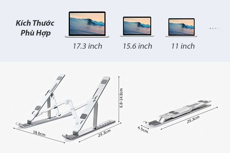 Với kích thước gập gọn lại và mở rộng có thể điều chỉnh để được kích thước của tất cả các dòng máy laptop