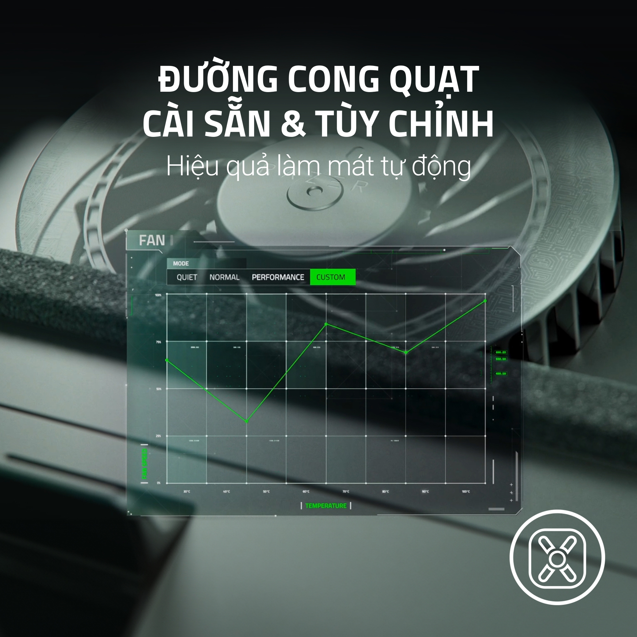 Đế tản nhiệt Razer Laptop Cooling Pad RC21-02300100-R3GW mang đến hiệu suất làm mát chủ động vượt trội với khả năng giảm nhiệt độ lên đến 16°C, giúp laptop hoạt động ổn định và mượt mà trong thời gian dài. Thiết kế buồng áp suất kín kết hợp đệm foam từ tính giúp luồng gió tập trung hiệu quả vào các khu vực sinh nhiệt chính như CPU và GPU, tăng cường hiệu suất và kéo dài tuổi thọ linh kiện bên trong máy.