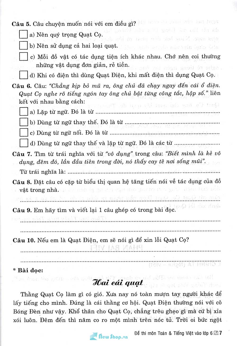 ✨Đề Thi Môn Toán Và Tiếng Việt Vào Lớp 6 - HA