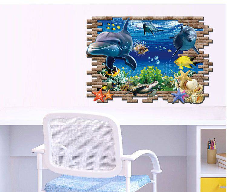 Decal dán tường Cá heo 3D có màu sắc tươi sáng, hình ảnh 3D. Decal với những khung cửa sổ, khung ảnh giả lập, tạo thêm điểm nhấn sáng tạo trong ngôi nhà của bạnDecal làm bằng nhựa trong pvc, thân thiện với môi trường, có thể lau chùi sau khi dán. Decal xuất khẩu, công nghệ cao, dán lên như vẽ.Kích thước sau khi dán: cao 60 x 90cm
