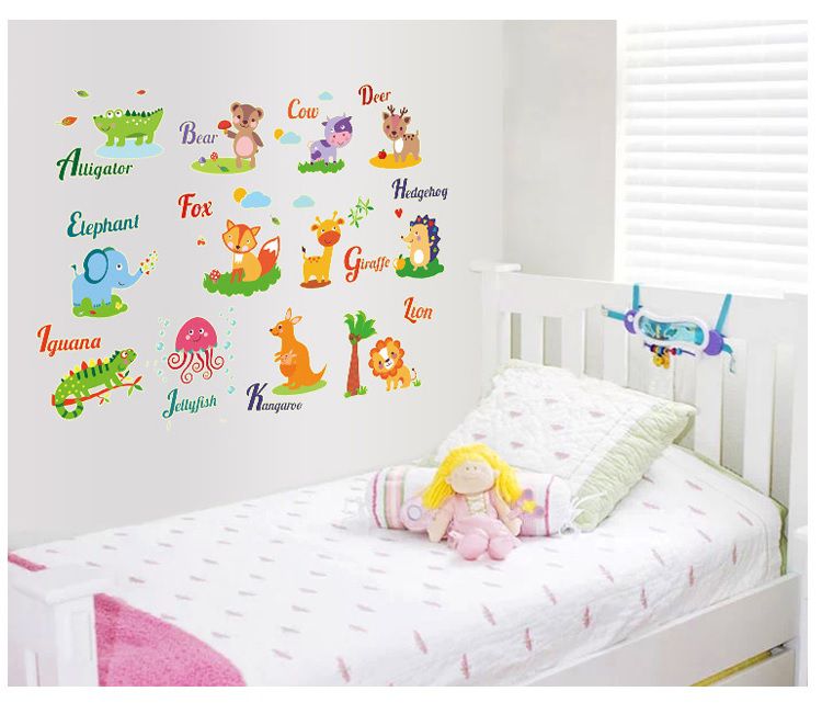 Decal dán tường Dạ quang đàn thú với các hình con vật thân thiện với bé, các tên động vật bằng tiếng anh giúp phụ huynh có thể cho bé sớm nhận biết về mặt chữ. Và đặc biệt là dạ quang ban đêm sẽ bé yêu thích căn phòng của mình nhiều hơn.