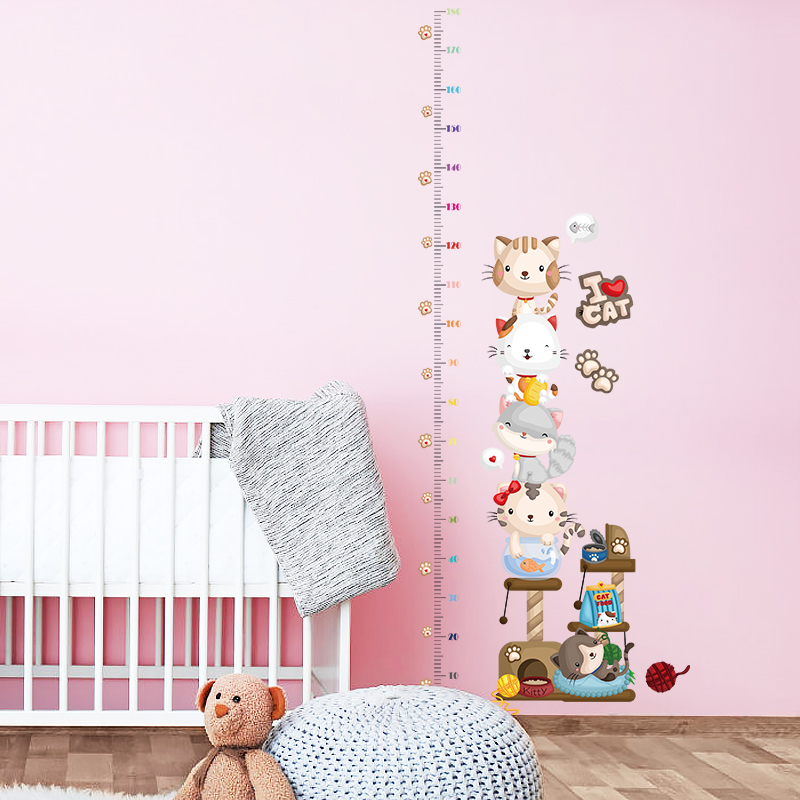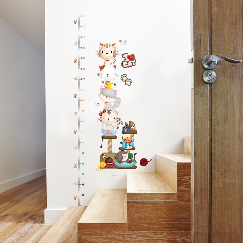 Decal dán tường đo chiều cao gia đình mèo SK9332