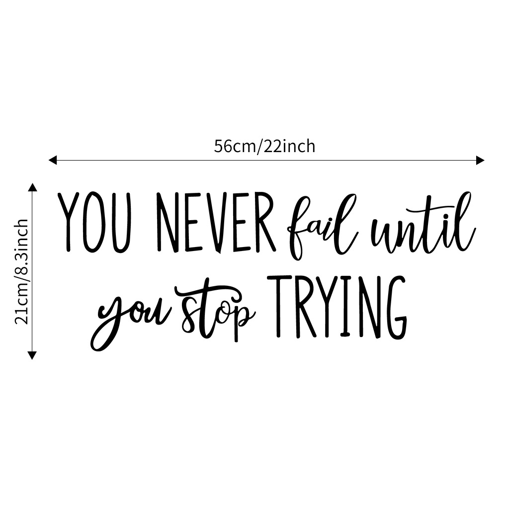 Decal dán tường tiếng anh tạo động lực ý nghĩa với câu Quote : You never fail until you stop trying. Decal cao cấp dễ dàng dán ngay tại nhà !