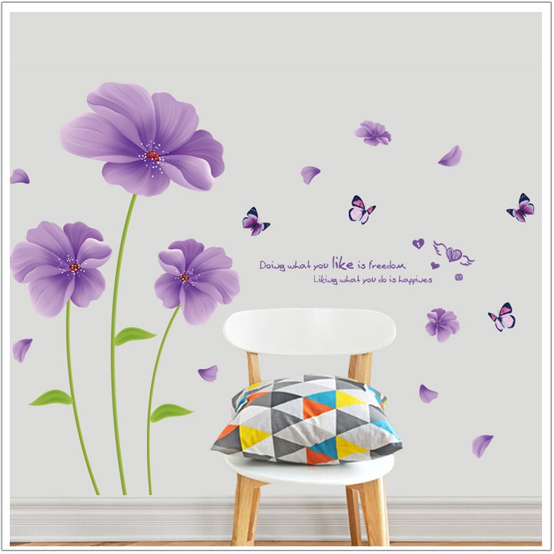 Decal dán tường Hoa tím to có màu sắc tươi sáng, hình ảnh 3D, tạo cảm giác mát mẻ, khác biệt, tràn đầy không khí thiên nhiên, trong lành ngay khi bước vào nhà bạn !Decal với chất liệu PVC vinyl cao cấp thân thiện với môi trường, không thấm nước. Bạn có thể lau chùi sau khi dán. Decal có thể dán trên nhiều bề mặt khác nhau như : gạch men, gỗ, kính, nhựa, xe, tủ lạnh và nhiều bề mặt phẳng mịn khác nhau.Kích thước sau khi dán : Cao 100 x ngang 200 cm