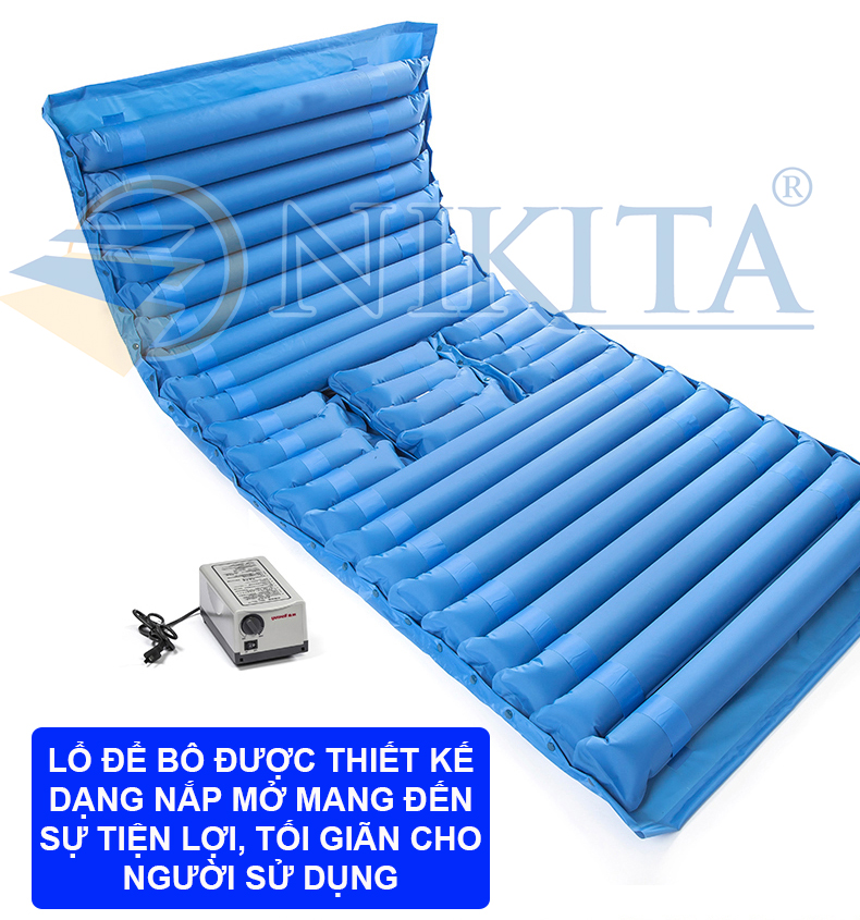 Đệm hơi chống loét, Nệm hơi chống loét NIKITA – hỗ trợ chăm sóc cá nhân, Máy bơm hoạt động êm ái, thoáng khí dễ chịu. - Sản phẩm có 4 phân loại bao
