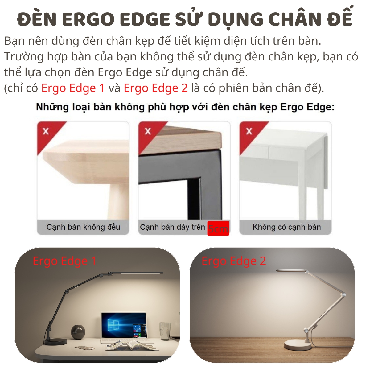 Đèn bàn bảo vệ mắt Ergo Edge 3 chống ánh sáng xanh, bảo hành 3 năm