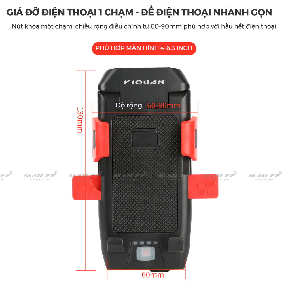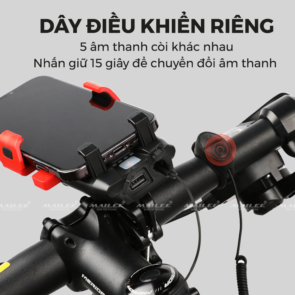 Đèn Xe Đạp 4in1 USB Giá Đỡ Điện Thoại 4-6.3 inch Còi 130dB 500 Lumens