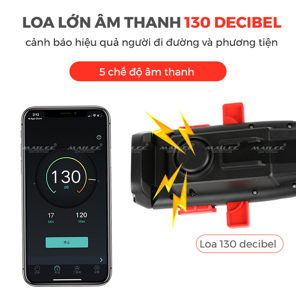 Đèn 5 LED Cảnh báo sau Xe Đạp giúp đạp xe an toàn ban đêm 4 chế độ sáng (Đèn Đỏ) Mai Lee Video thực tế đèn LED xe đạp cảnh báo Màu Đỏ
