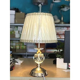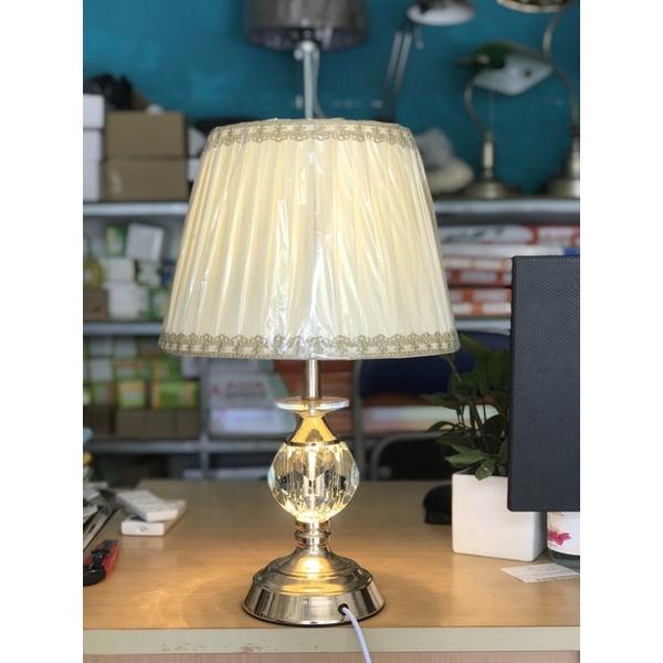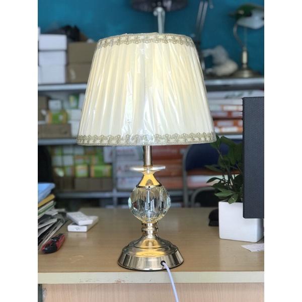 Mua tại Tiktokđèn bàn chân pha lê Chất liệu: chao vải+ thân pha lê hợp kim mạ đồng Kích thước: D32*H50 Sử dụng bóng led phổ thông dễ sử dụng - dễ thay thế Ánh sáng dưới thân pha lê ánh sáng trên chao đèn