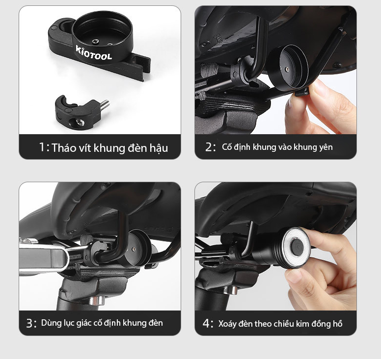 Đèn hậu Xi Nhan xe đạp Kiotool không dây pin sạc Bộ sản phẩm gồm: hộp đựng, đèn hậu xin nhan, điều khiển đèn xin nhan gắn ghidong tặng kèm dây sạc Đèn xin nhan