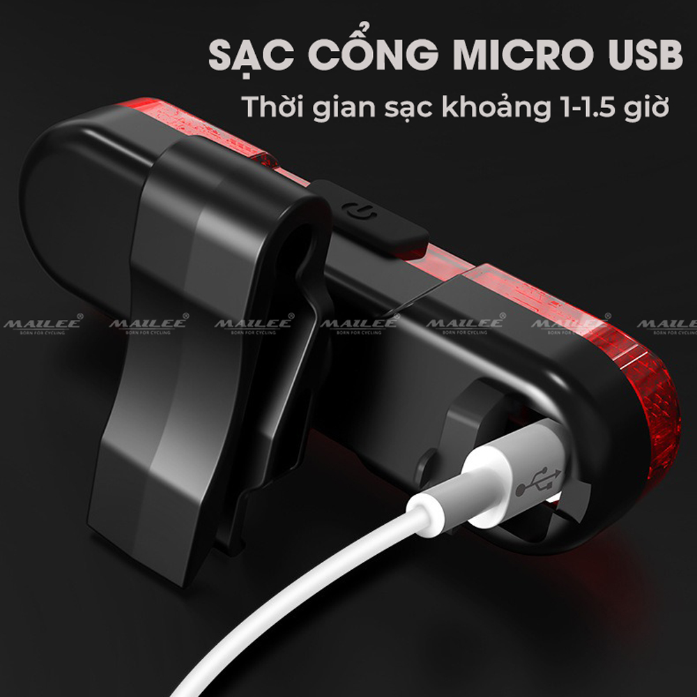 Đèn Đuôi Led Xe Đạp BK880 Chống Nước Siêu Sáng Nhiều Chế Độ Sáng Sạc Điện USB  MaiLee Dễ dàng sạc điện qua ngõ micro USB tiện lợi Led sáng giúp đảm bảo an toàn