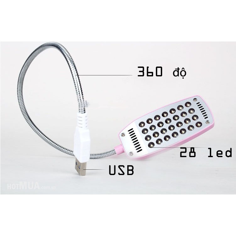 - Đêm khuya khi mọi người trong phòng đã ngủ nhưng bạn vẫn muốn đọc sách, học bài hoặc làm việc thì phải làm sao đây ?Đèn led 28 bóng cắm cổng USB sẽ là giải pháp tuyệt vời cho tất cả các bạn! Đèn được cấu tạo khá đơn giản từ 28 bóng đèn nhưng khả năng và tác dụng của nó thì không phải bàn cãi, thiết bị cung cấp đủ ánh sáng cho bạn làm việc, học tập nhưng không hề hại mắt không ảnh hưởng tới mọi người xung quanh. Hãy thử và cảm nhận sự tiện lợi mà chiếc đèn Led 28 bóng này mang lại.