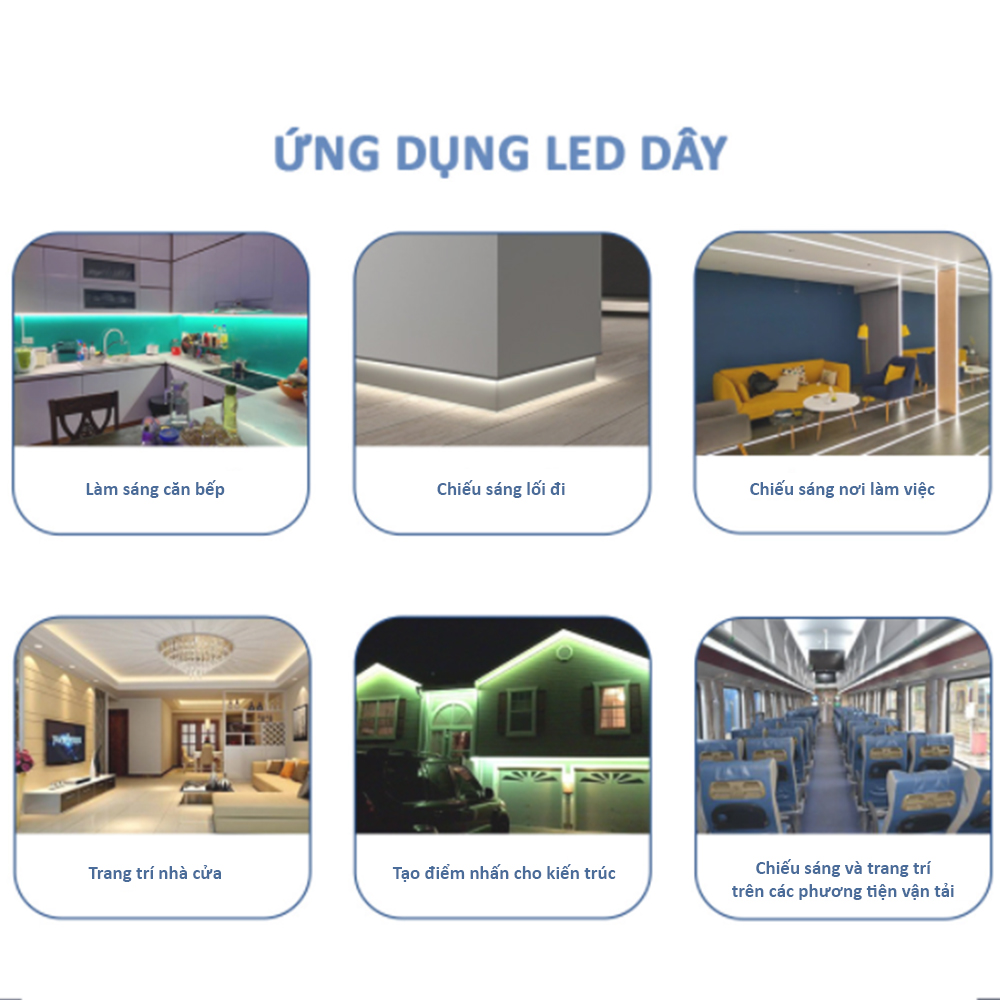 ** Khuyến cáo sử dụng điện áp đầu vào: 24VDC (Sử dụng biến thế có công suất tương ứng với công suất của LED dây)