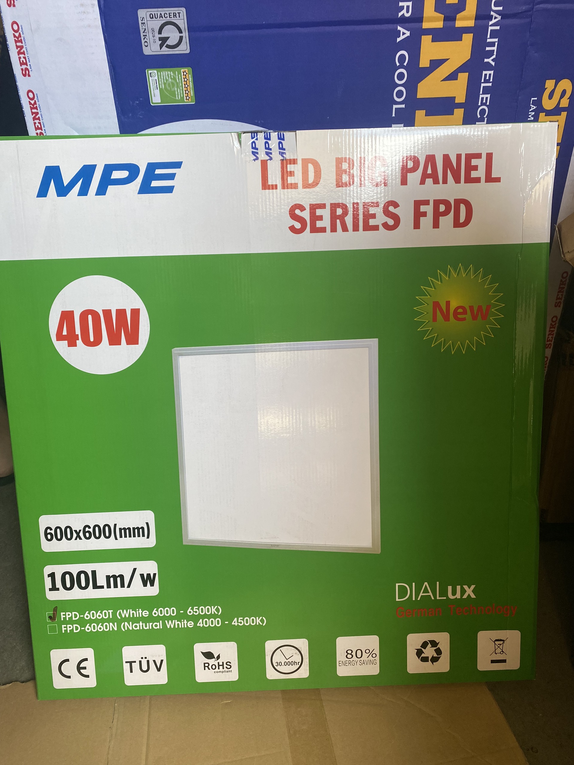 đập hộp bóng đèn MPE 40w vuông 600x600