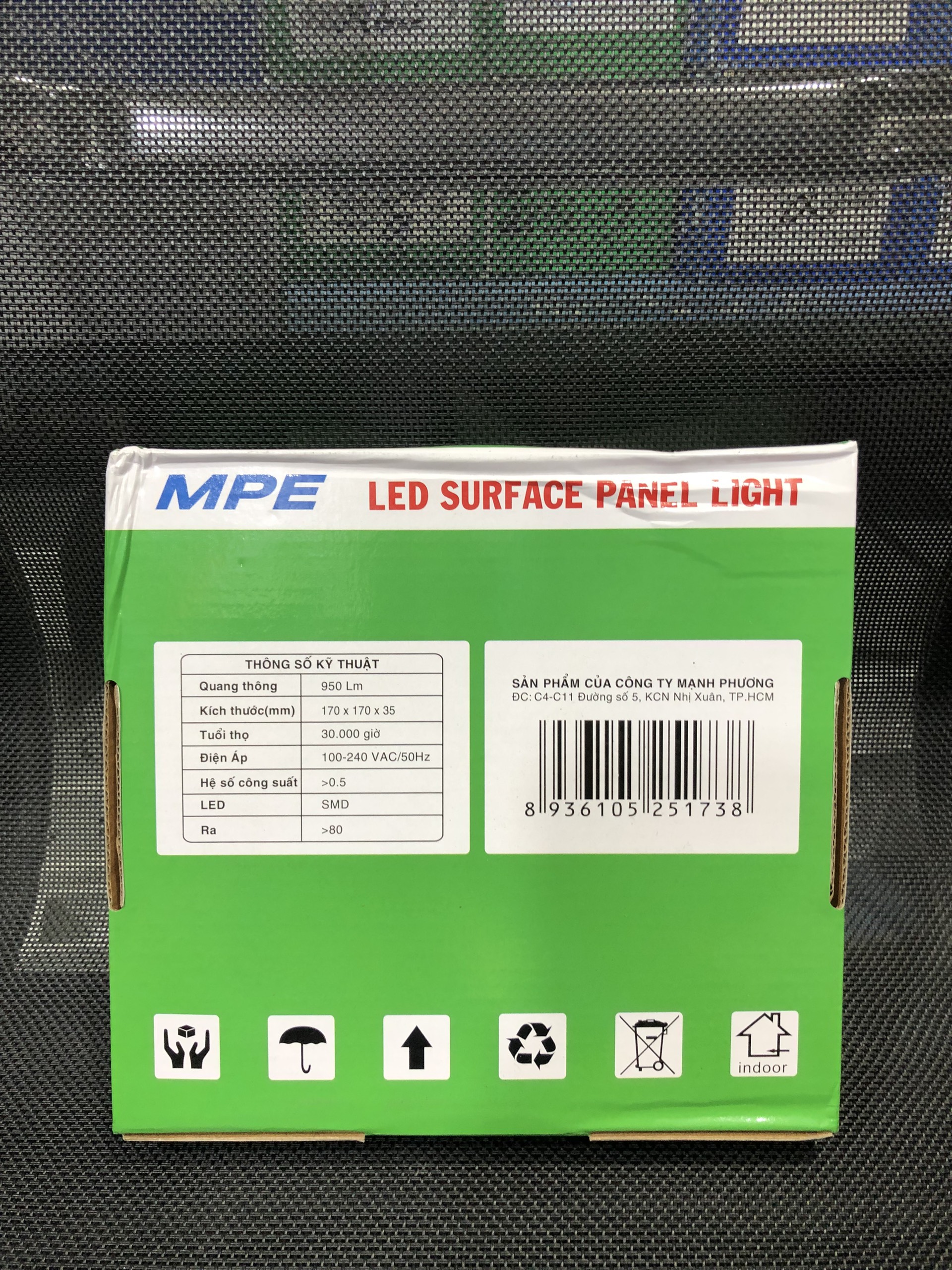 Mua tại TiktokĐèn Led Panel Ốp Trần Nổi 12W Hệ số công suất (PF): >0.5 Quang thông: 950 lm Nhiệt độ màu (CCT): 6000-6500K/2800-3200K. Ánh sáng trắng, vàng tương ứng với 2 mã hàng: SRPL-12T, SRPL-12V Chỉ số hoàn màu (CRI): >80 MPE Led Surface Mounted Round Panel size: Ø170mm × 35mm Quy cách đóng gói: 1 cái/hộp Kiểu dáng đẹp, mẫu mã đa dạng, nhiều chủng loại, đèn led panel ốp trần nổi MPE dễ dàng gắn nổi trần bê tông/ trần thạch cao cho các công trình: nhà phố, biệt thự, căn hộ chung cư, văn phòng. CE RoHS Điện áp: 100-240VAC Tuổi thọ: 30. 000 giờ Chip LED: SMD2835 RA>80 PF>0.5 CCT: 2800-3200K/ 6000-6500K Góc Chiếu: 120° Instant Light: 0s