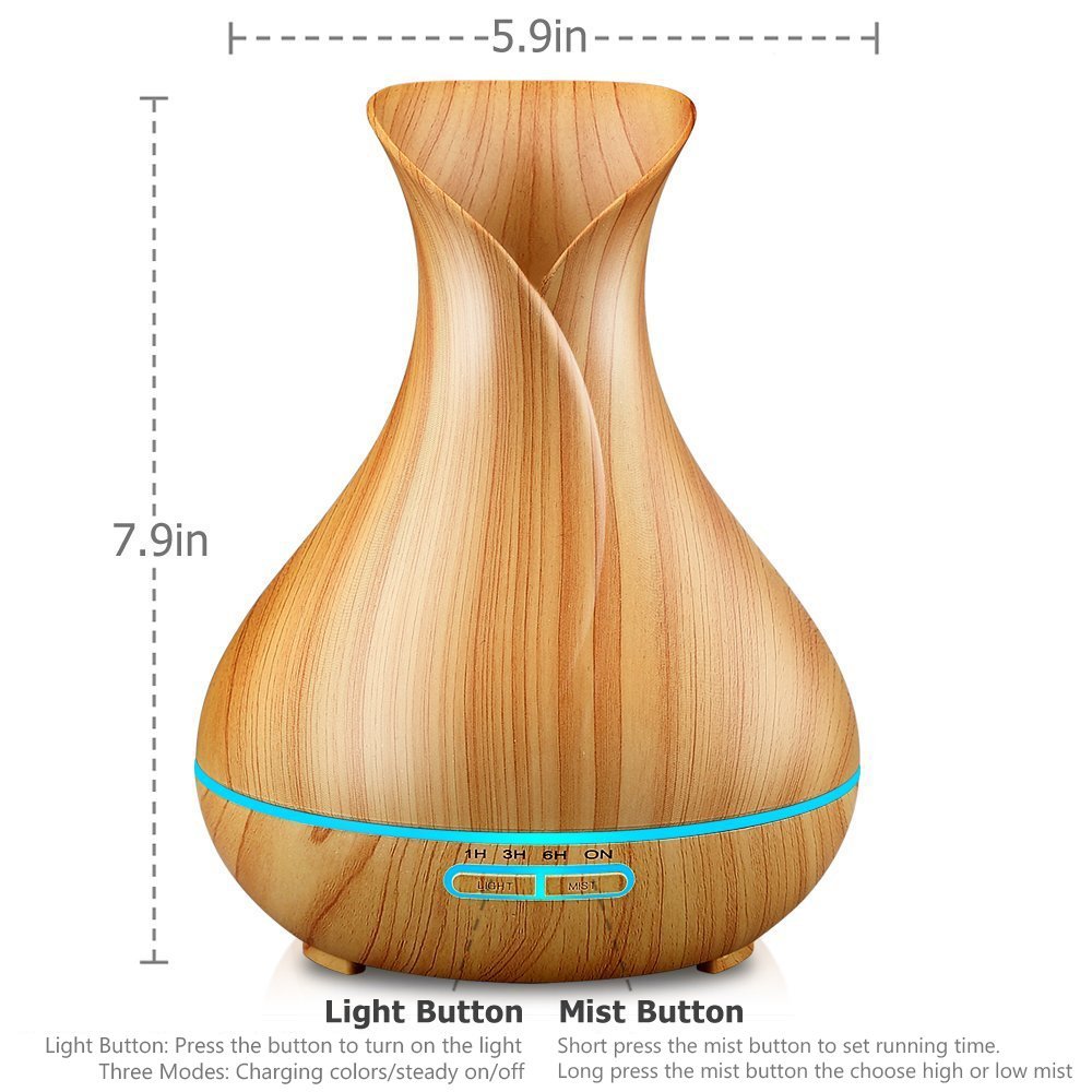 - Màu sắc: Gỗ sáng, gỗ tối Kích thước: 17*17*21.8cm Chất liệu: Nhựa ABS Dung tích: 400ml Trọng lượng: 800g Công suất: 18W Diện tích khuếch tán: 30-35m2 Thời gian hoạt động: 8-10h Đèn led: