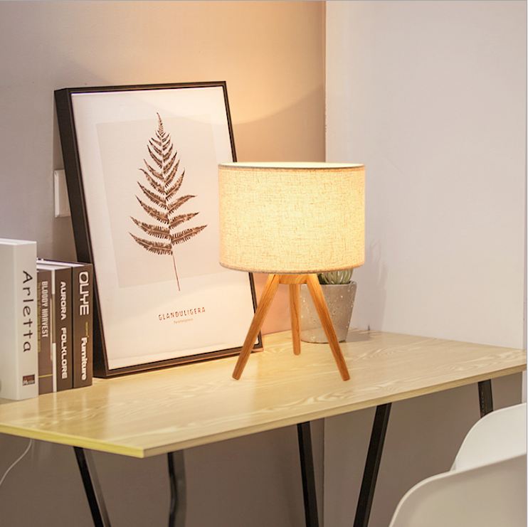 Đèn bàn với thiết kế hiện đại với những đường cắt nét tinh tế, chân đèn làm từ chất liệu gỗ, chắc chắn với tạo hình chạc 3 chân chắc chắn.